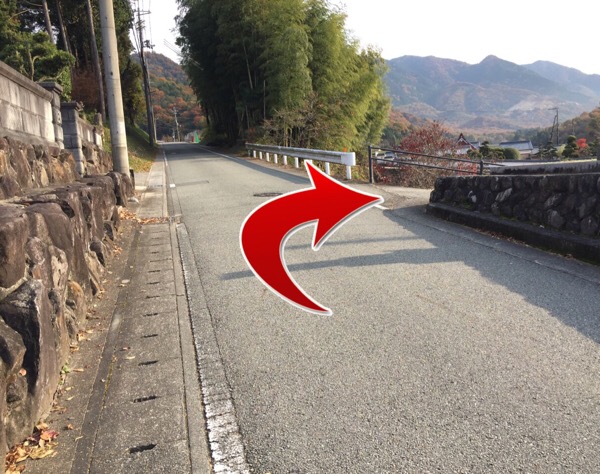右手に墓地を見た直後の右手方向へ